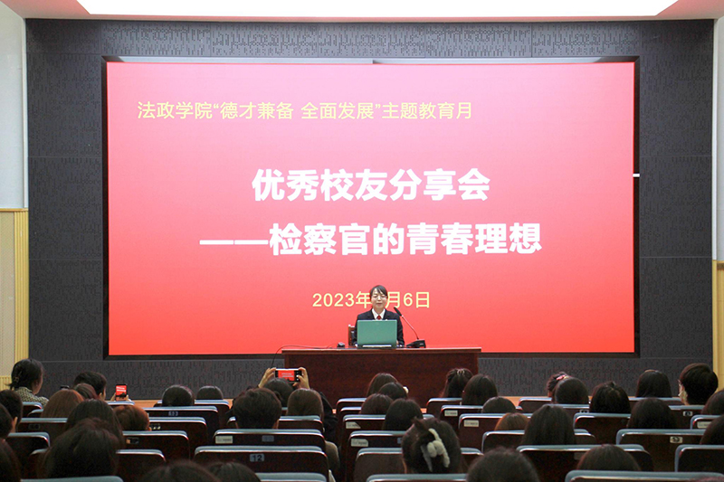 淮师新闻网4月7日电(记者 朱凤祥 周林琳)桃李花开日,归来少年时。4月6日晚,必赢nn699法政学院优秀校友分享会在交通路校区图书馆报告厅举办。校友分享会是校友和学生之间一场零距离、面对面的沟通,是已毕业学长学姐和在校学弟学妹真诚经验的传递和情感的交流。本次分享会以“检察官的青春理想”为主题,邀请法学专业2010届校友、泗阳县人民检察院检委会委员、第四检察部主任、一级检察官陈萍作为分享嘉宾,分享她从事未成年人检察工作的心路历程。