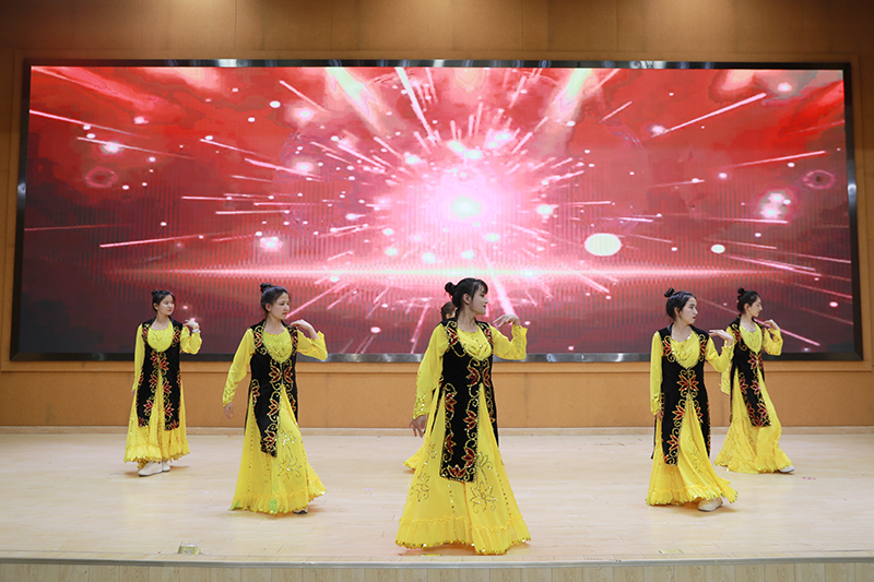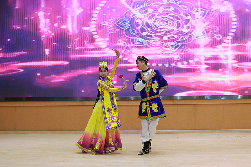 决赛中,来自维吾尔族、哈萨克族、锡伯族、壮族、彝族、土家族、回族等11个少数民族的学生,通过舞蹈、朗诵、弹唱等形式,展示本民族绚丽多姿的民族文化,展现少数民族大学生昂扬奋发的精神风貌。文学院土家族学生王瑀琦等同学带来声情并茂的朗诵《同心颂中华》,寄予了少数民族儿女对祖国蓬勃发展的深切期望和祝福;音乐学院回族学生金慕维用中阮演奏《丝路驼铃》,古丝绸之路的悠悠驼铃声萦绕耳畔,描绘了一幅雄浑壮美的边塞画卷;传媒学院维吾尔族学生阿菲拉·阿不都许库,预科班维吾尔族学生排黑尔丁·麦麦提阿卜杜拉、哈萨克族学生吉别克·赛力克等同学带来的舞蹈《异域风情》《石榴花开》《夏合纳孜莱》《葡萄架下的篝火》《美丽新疆》展示了新疆各族人民勠力同心,共创美好生活的生动画卷,异域民族风情渲染了整个舞台。教科院土家族学生张萌的一首独唱《阿刁》,文学院维吾尔族学生买吾拉·吾斯曼、教科院哈萨克族学生努尔拉尼·凯夏的合唱《可可托海的牧羊人》,激情四射又不缺优雅,嗨翻全场;音乐学院彝族学生金紫晨等同学带来彝族舞蹈《不要怕》,传媒学院苗族学生潘杨梅等同学表演舞蹈《画卷》,激情四射,活力满满,展示少数民族同胞不怕困难团结一心的美好品质。美术学院土家族学生黎曌以书法朗诵结合的形式表演《书写土家风情》,体育学院壮族学生韦永帅等同学表演《醒狮文化》,动作行云流水,引发全场欢呼。决赛在《爱我中华》的优美节奏中落下帷幕。