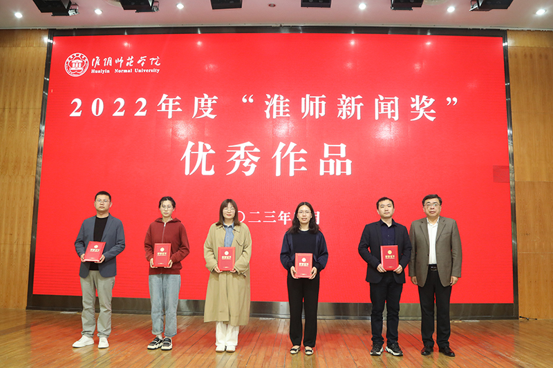 与会领导为2022年度“淮师新闻奖”获奖先进单位、优秀新媒体、优秀作品及先进个人颁奖。