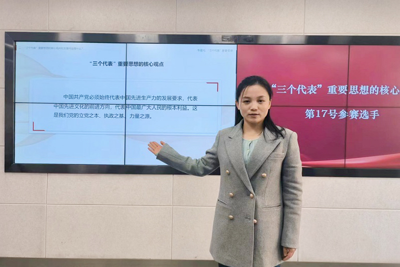 在教学展示中,丁妍以“黄文秀的人生选择”为案例,讲授如何提升人生价值;张宏伟阐释了习近平外交思想形成的时代背景;李玉才以淮安当地的百年巨变导入新课,沿着“救国、兴国、富国、强国”历史逻辑讲授中国共产党百年奋斗史;黄风燕剖析了实践的主体与客体的关系及相互作用;周以杰分析了中国先进分子之所以选择马克思主义的历史必然性;邢慧颖深入阐述了“三个代表”重要思想的核心内涵。6位教师按照新时代思政课的改革创新要求,从教材内容和学生实际出发,力求让思政课“有知有味”,展示了自身良好的理论功底、教学水平和精神面貌。