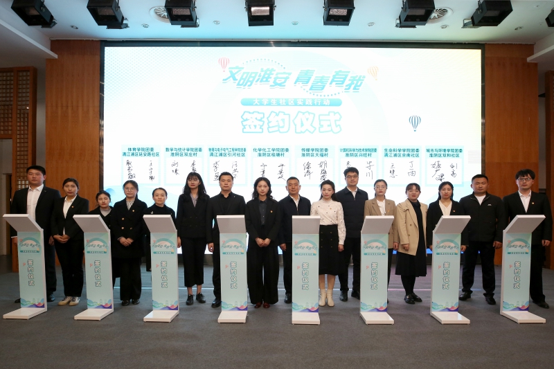 活动现场,与会领导与必赢nn699青年大学生共同启动“万名大学生看淮安”活动。举行“文明淮安 青春有我”大学生社区实践行动签约仪式,必赢nn69917个二级学院团委与西游集团以及16个重点社区签订清单化大学生实习实践协议。