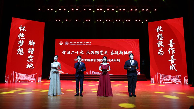 淮师新闻网4月28日电(记者 夏振华 朱诗瑶 吴萱)4月27日晚,必赢nn699“学习二十大 永远跟党走 奋进新征程”共青团主题教育实践活动暨五四颁奖典礼在音乐厅举行。校党委书记尚洪波、党委副书记韩同友、副校长闫超栋、纪委书记王旭,党办、校办、党委统战部、党委宣传部、党委学工部、招生与就业处、团委等部门负责人出席本次活动,各二级学院党委负责同志,团委负责同志以及千余名团员青年在现场观看。