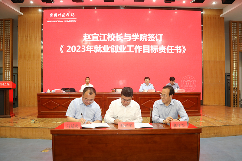 赵宜江代表学校与二级学院党委书记、院长签订了《2023年就业创业工作目标责任书》。