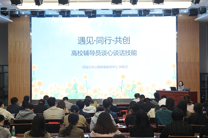 本期培训于4月6日至5月23日开展,包括政治理论培训、实务技能培训、心理专项培训、研讨交流总结4个模块。中国矿业大学学生工作处副处长范韶维副教授作《新时期大学生心理危机预防与干预的重点和难点》报告。河海大学副教授、心理中心主任刘取芝博士作《遇见·同行·共创——高校辅导员谈心谈话技能》讲座。江苏省委党校王新军教授讲授习近平外交思想。河海大学水利水电学院辅导员姜帆老师结合“认识 定位 提升 成长”关键词,分享参加素质能力大赛经验。分组讨论中,8位老师结合学生工作实际,聚焦心理危机中辅导员的应对和思考,分享经验做法。研讨交流中,6位老师分享心理危机干预案例。
