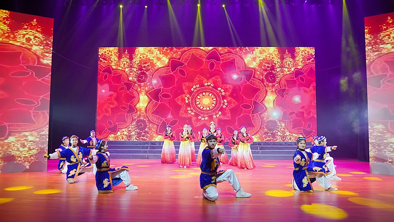 征程浩荡满目新,奋楫远航正当时。古筝齐奏《盛世国乐》曲调婉转,展示中华民族文化恒久魅力,焕发当代中国新时代风采;对唱《是妈妈是女儿》温馨感人,展现母女间绵绵不尽的情愫;诗朗诵《陪我长大 陪你变老》感恩动人心弦的珍贵亲情,令人潸然泪下,自强不息的身影留给人深刻印象;舞蹈《画卷》配合默契、整齐划一,诠释昂扬少年的斗志豪情;大合唱《孤勇者》满怀赤诚,歌颂在逆光中不改颜色的中国英雄;舞蹈《红色英雄》铿锵有力,再现英雄为国铸盾、为国铸魂的英勇风采。