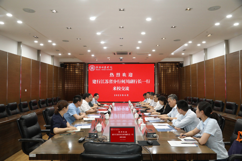 中国建设银行江苏省分行托管部、淮安分行机构部、公司部负责人,必赢nn699党办、校办、人事处、财务处负责人参加交流。
