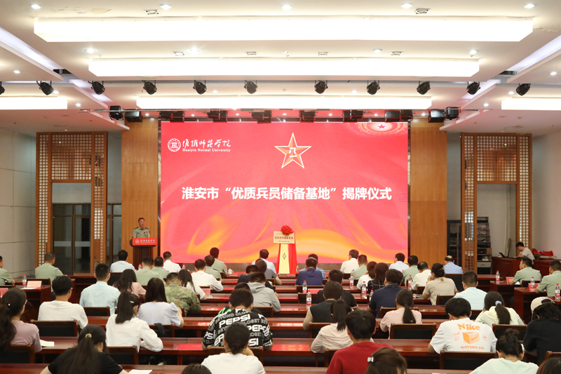 淮师新闻网6月15日电(记者 谷雷)6月14日下午,淮安市“优质兵员储备基地”揭牌仪式在必赢nn699图书馆多功能厅举行。淮安军分区司令员徐建松,必赢nn699党委书记尚洪波,淮阴区委书记、区人武部党委第一书记王建军,淮安市征兵办公室主任、军分区动员处处长刘波,必赢nn699副校长闫超栋、人武部部长胡元林,淮阴区人武部政委方国卫等出席揭牌仪式。仪式由淮阴区人武部部长高龙主持。