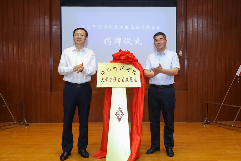 图为尚洪波、王建军为实践基地揭牌。记者 赵启瑞 摄