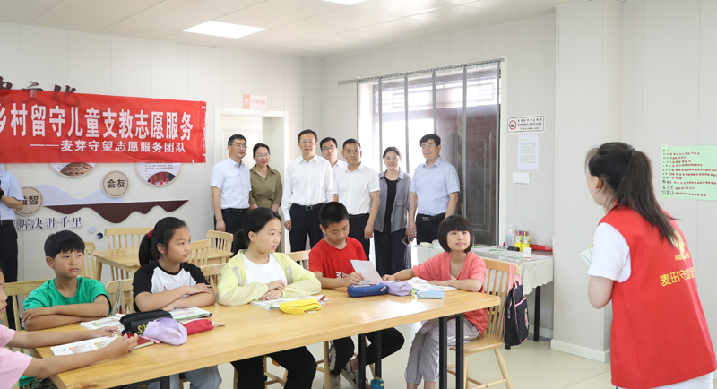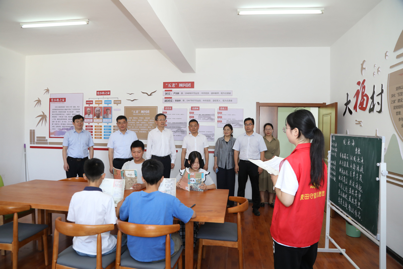 尚洪波一行来到淮高镇大福村看望慰问历史学院麦芽守望实践团成员,实践团队围绕服务“一老一小”群体,从社会工作助人自助特色专业理念出发,通过开设文化学习、艺术课堂、拓展训练等爱心助学活动,全方位助力大福村乡村儿童多元发展。座谈会上,尚洪波听取了实践团成员代表汇报本次实践活动开展情况。他对团队实践工作的开展表示了高度肯定,并叮嘱实践团师生要增强安全防范意识,平安、高效、优质地完成实践任务。