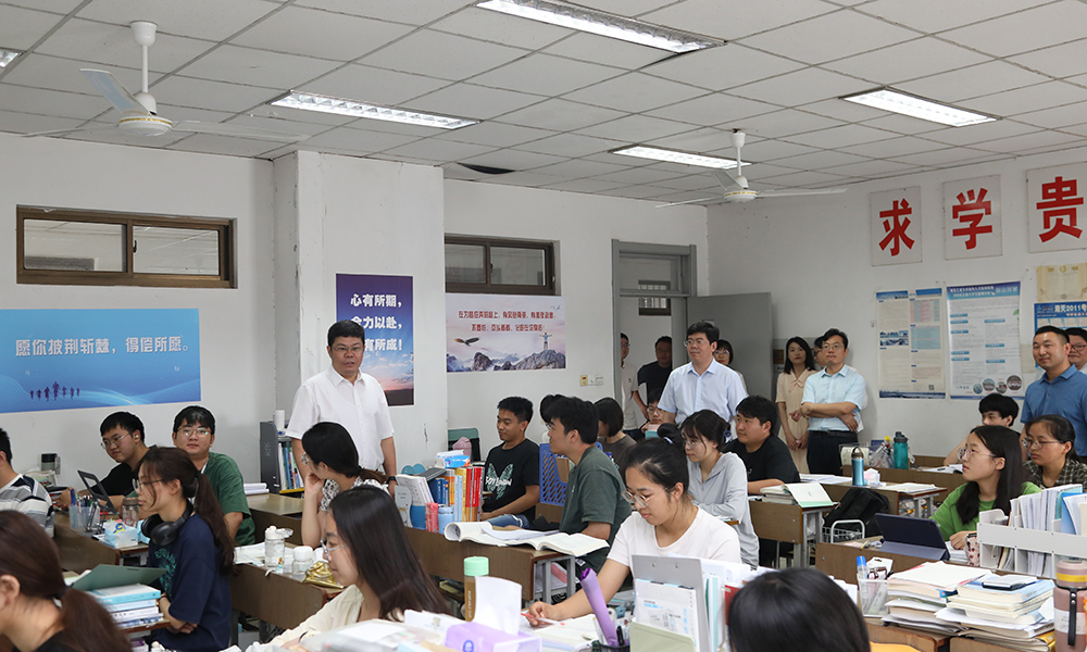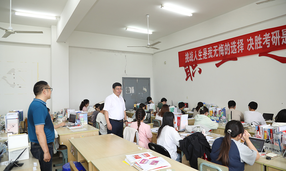 在考研教室,赵宜江亲切地与同学们进行交流,深入了解他们的学习备考情况,充分肯定了同学们为实现梦想不断努力,敢于拼搏的精神。他勉励同学们要养成良好的学习习惯,掌握科学的学习方法,合理安排时间,以平和的心态应对压力和考验,并祝愿同学们顺利“上岸”。他要求相关单位要坚持“时时放心不下”的责任感,把困难留给自己,把方便留给学生,将学生的期盼诉求解决好,做到教育不断线、服务有保障,努力让学生学的安心舒心。