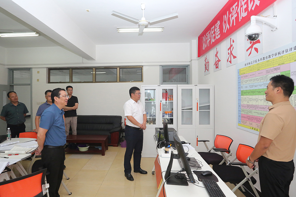 图为校长赵宜江走访评建办。记者 唐瑀 摄
