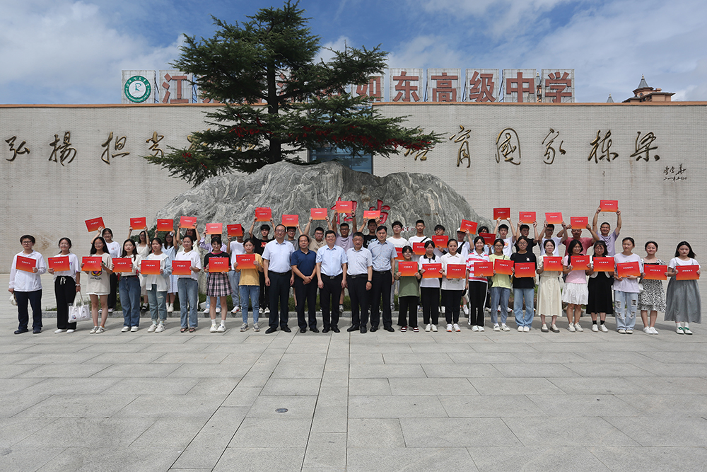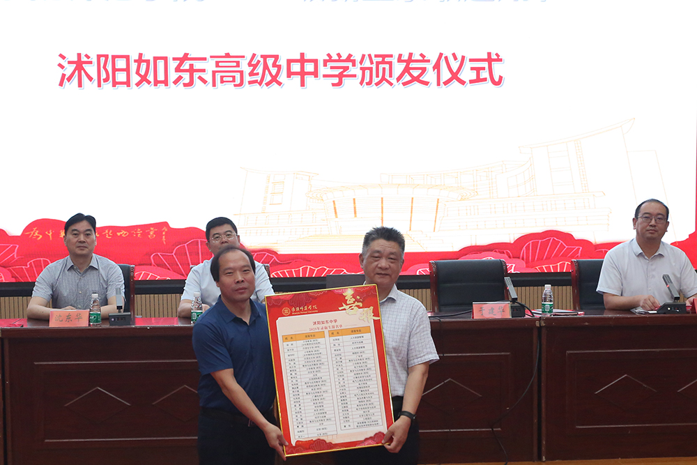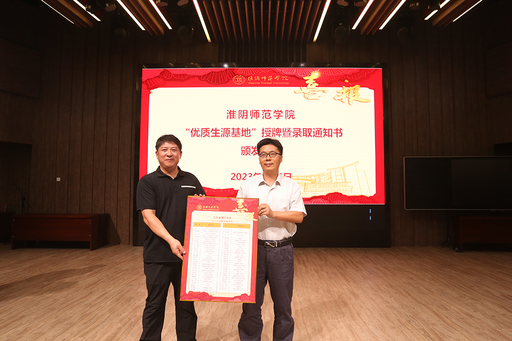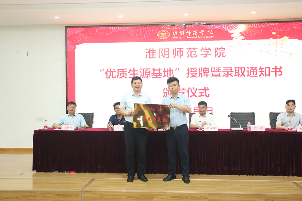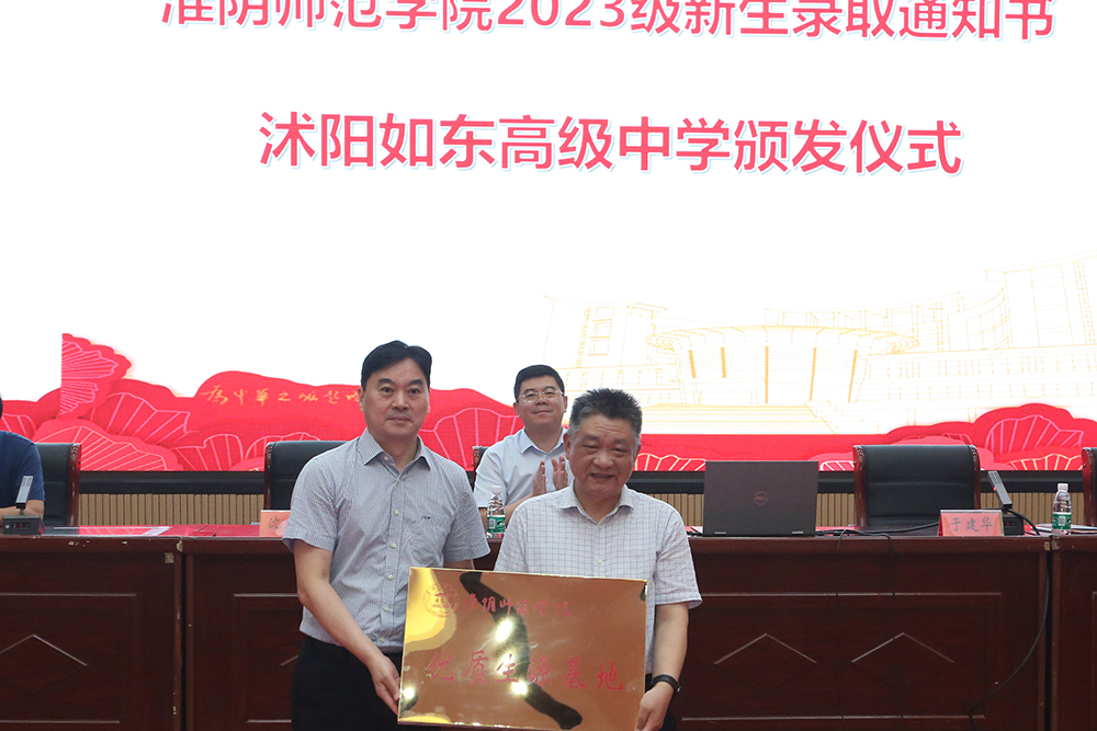 图为淮师赴沭阳如东高级中学授牌、赠送录取喜报、颁发录取通知书。记者 唐瑀 摄