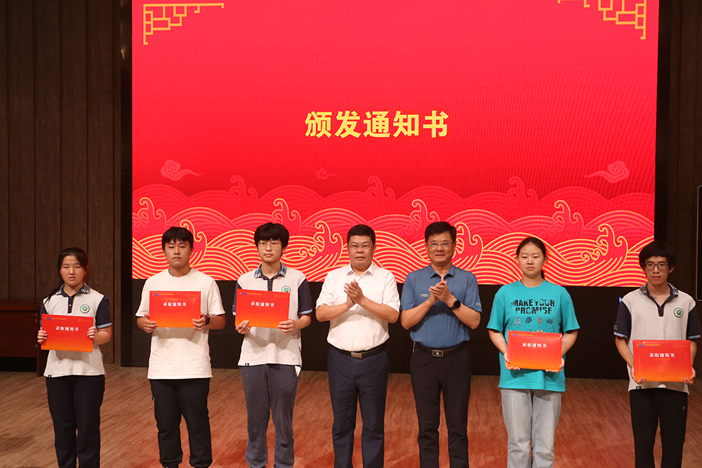 图为校长赵宜江在南师大附属扬子中学向淮师2023级新生颁发录取通知书。记者 张菁菁 摄