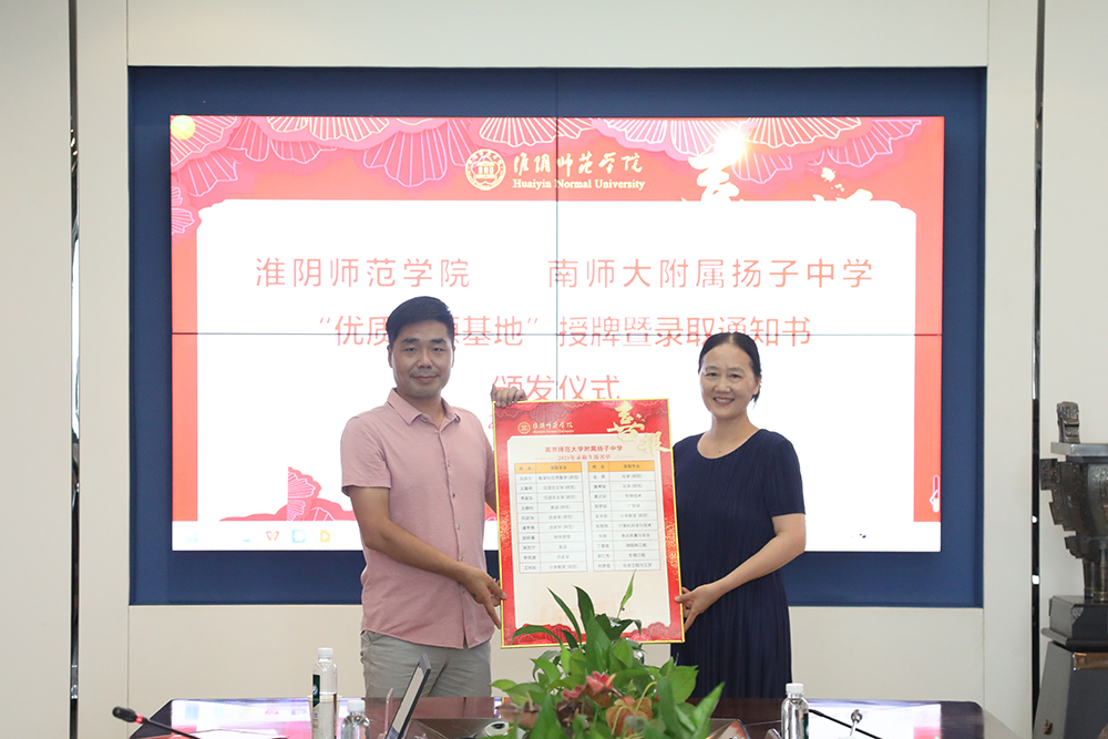 图为淮师赴淮安中学授牌、赠送录取喜报、颁发录取通知书。记者 唐瑀 摄