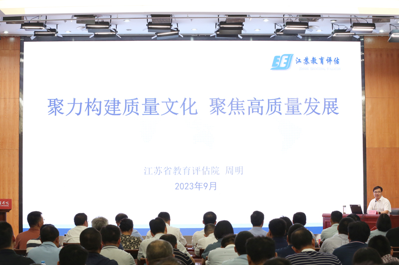 图为江苏省教育评估院院长周明作辅导报告。记者 唐瑀 摄