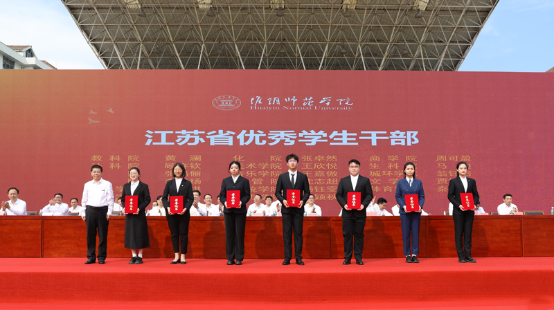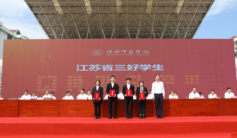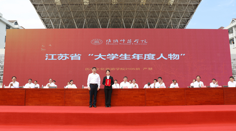 典礼上,校领导分别为国家奖学金获奖同学,第十三届“挑战杯”中国大学生创业计划竞赛全国金奖、铜奖获奖同学,江苏省“大学生年度人物”、历史文化旅游学院2021级学生严慧,江苏省先进班集体获奖班级代表,江苏省优秀学生干部获奖同学,江苏省三好学生获奖同学等颁奖。
