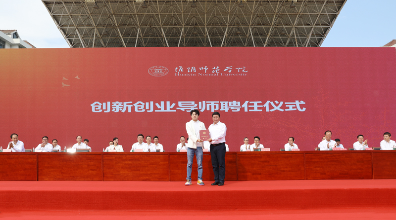 计科学院2012届毕业生、抖音海外版(Tiktok)投资人杨明君先生作为优秀校友代表发言。他从理想、创新、勇敢三个方面分享了他的求学创业经历,鼓励同学们做勇于追求理想、敢于创新的淮师人。赵宜江为杨明君先生颁发创新创业导师聘书。