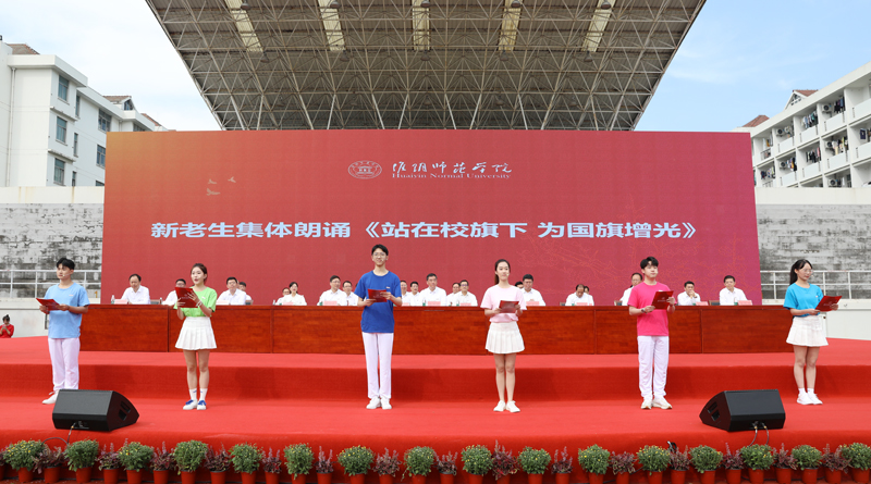 最后,新老生代表为大家带来集体朗诵《站在校旗下 为国旗争光》。