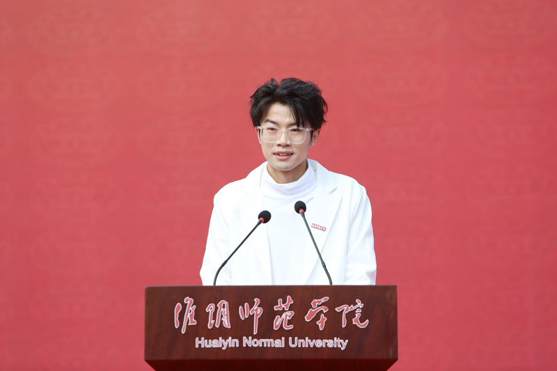 化学化工学院宋洁教授作为教师代表发言。她从选择、适应和发展等大学生涯的三个环节鼓励同学们将未来牢牢把握在自己手里,并祝愿同学们在淮师大有作为。