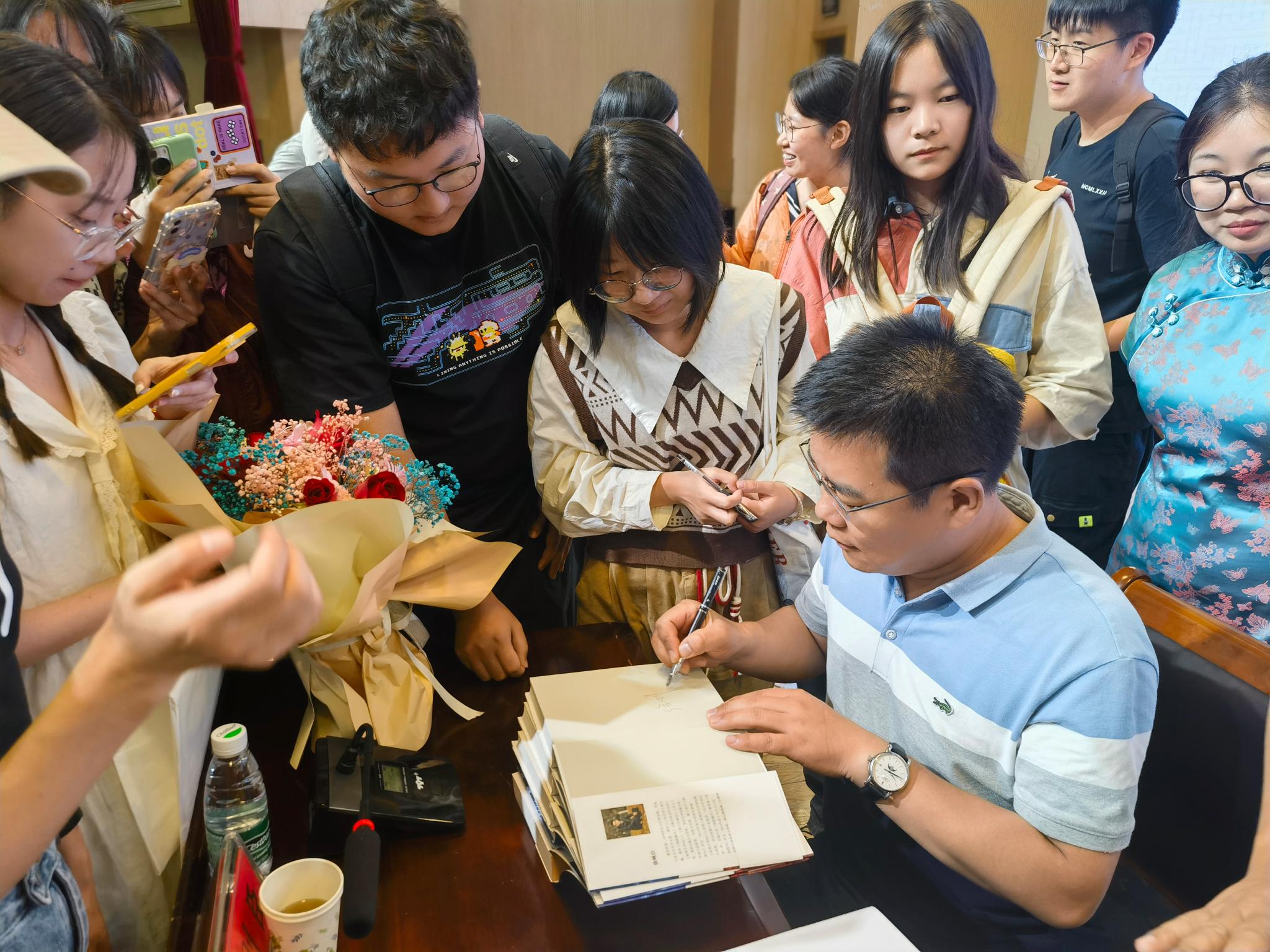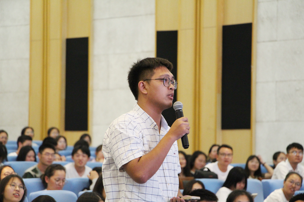 互动环节,同学们就专业学习与文学创作中的疑惑踊跃提问,徐则臣耐心细致地一一回应,精彩的解答引得阵阵掌声。现场气氛热烈,学术氛围浓厚。徐则臣畅谈大学生活与创作经历,探讨文学阅读与人生、生活的关系,既有理论高度,又有现实针对性、趣味性与启发性。