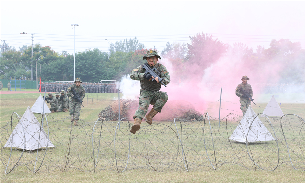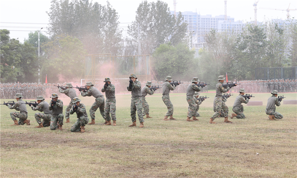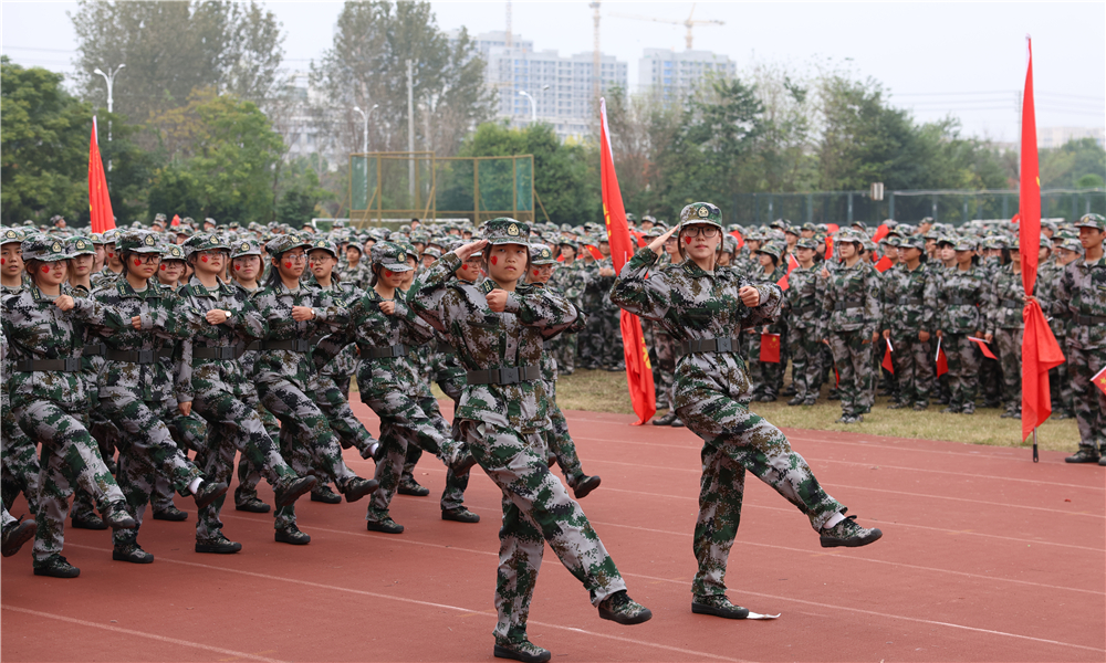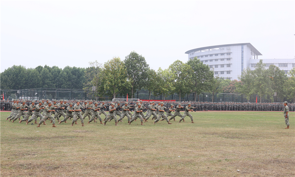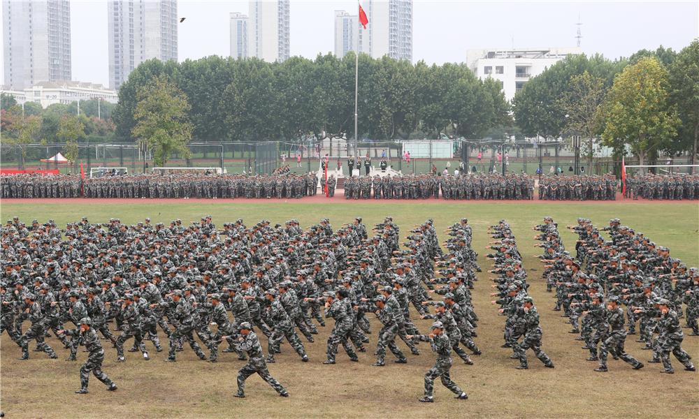 400名女生表演的匕首操、400名男生表演的格斗术、部队军训教官队列转换表演以及战术表演,充分展示了淮师新生的风采和新时代革命军人的过硬军事素养,赢得了现场师生的阵阵掌声。