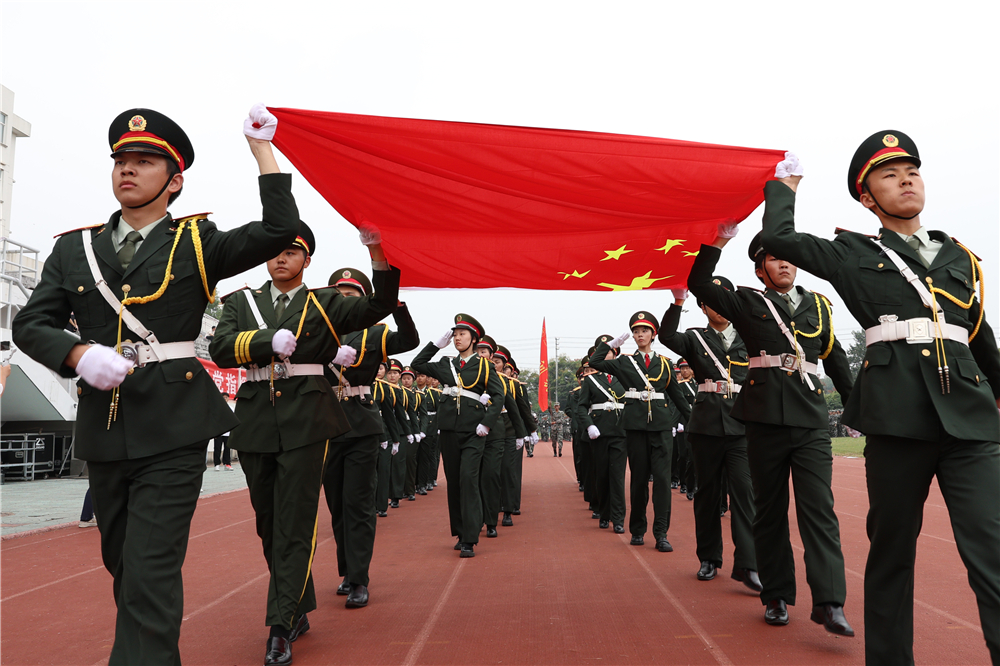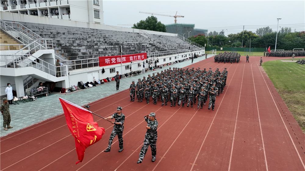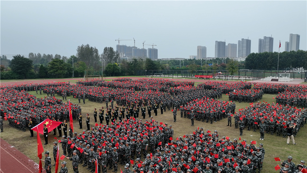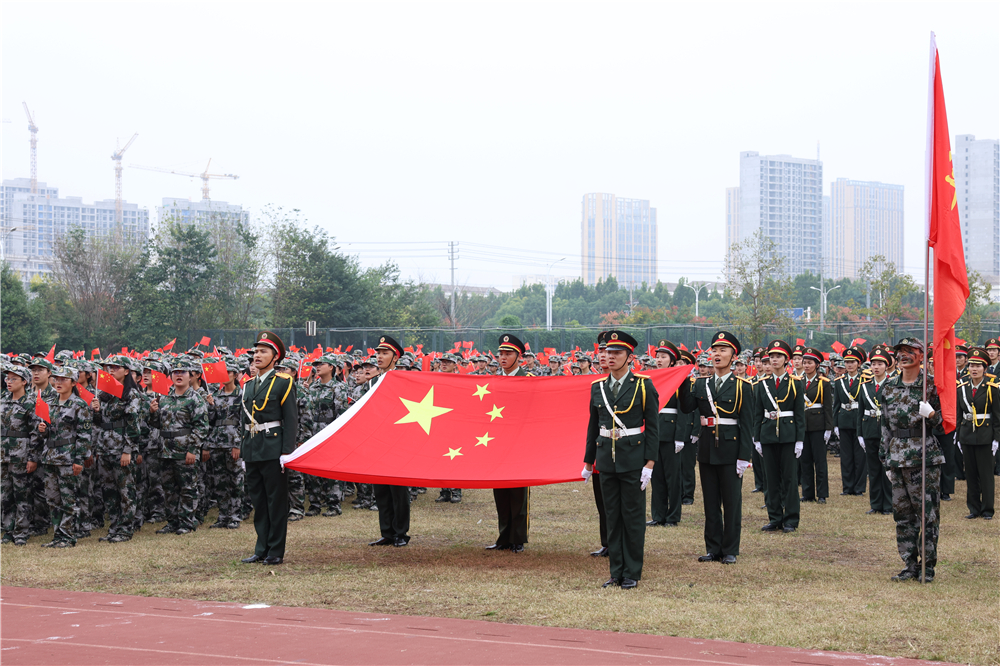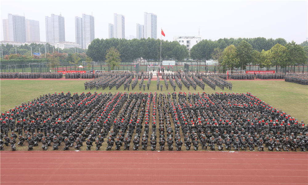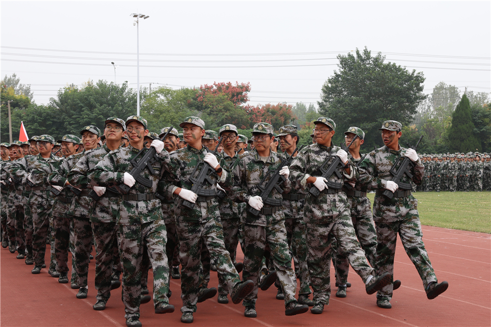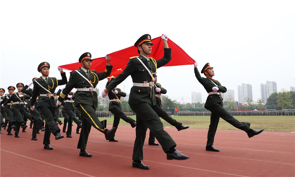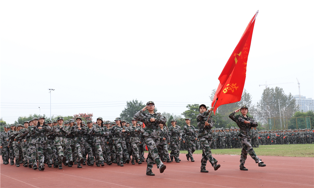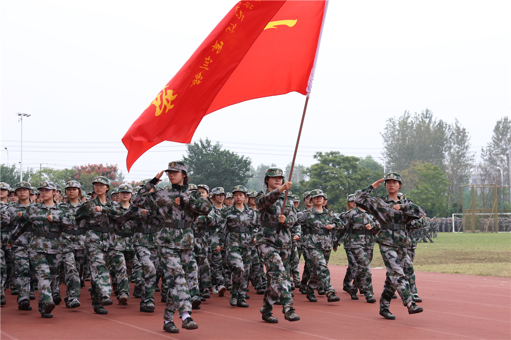 尚洪波代表学校向承训部队赠送锦旗。在《中国人民解放军检阅进行曲》的伴奏下,国旗班、持枪方阵及五个军训团的46个方阵分列式入场,依次通过大会主席台接受检阅,新生们精神饱满、步伐整齐、呼号嘹亮,全面展示了两周以来丰硕的军训成果。