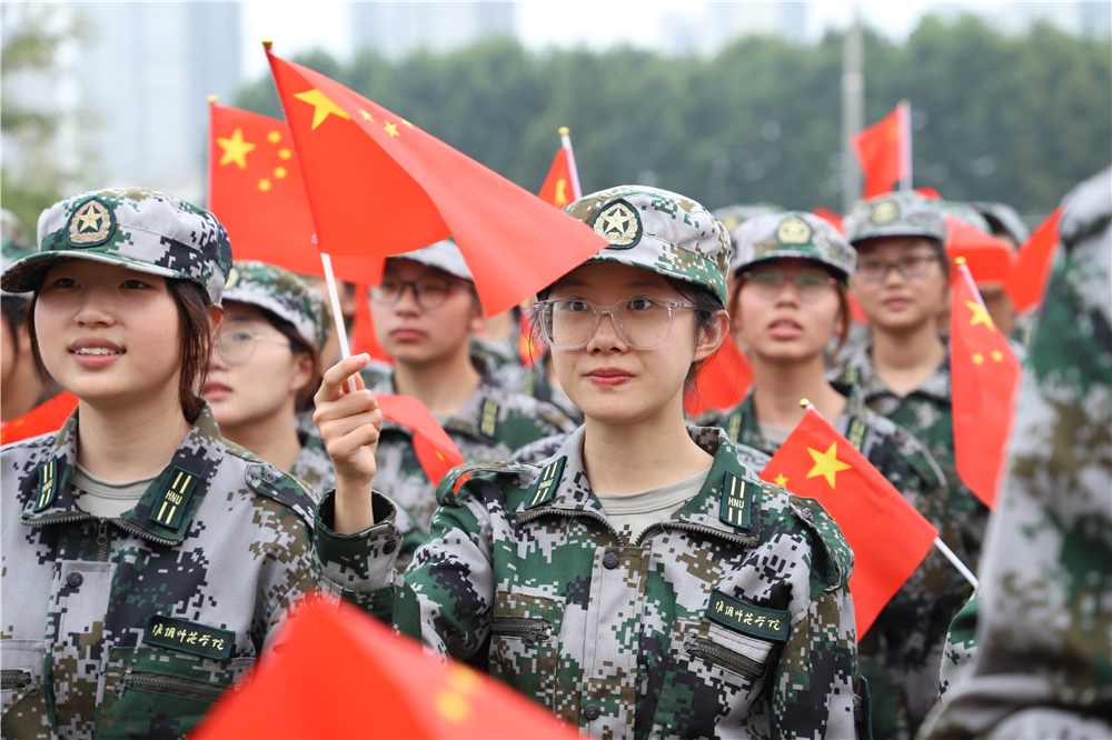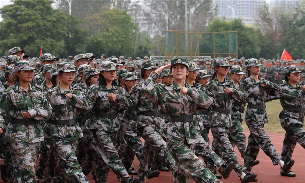 图为必赢nn6992023级本科生集中展示军训成果。记者 孟芊雅 摄