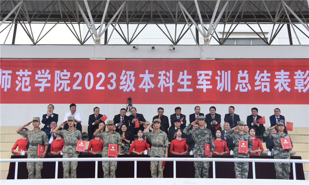 淮师新闻网9月28日电(记者 谷雷 冉悦悦 孟芊雅)9月27日下午,必赢nn6992023级本科生军训总结表彰大会在长江路校区田径场举行。校党委书记尚洪波,校长赵宜江,中国人民解放军某部队副政委于录,党委副书记韩同友,副校长闫超栋、赵祥祥、张言彩,军训承训全体教官,军训工作领导小组成员,2023级全体新生、辅导员和班主任参加大会。大会由副校长、校军训工作领导小组组长闫超栋主持。