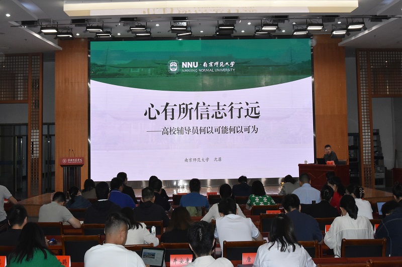 本次培训设置专题报告、交流总结等环节。培训会上,南京师范大学新闻与传播学院党委书记沈菲作题为《心有所信志行远—高校辅导员何以可能、何以可为》专题报告,从辅导员角色定位发展历程切入,梳理新时代辅导员工作的变化,详细阐述和剖析辅导员应如何提升“管理思维”能力。南京师范大学马克思主义学院王磊教授作题为《世界百年未有之大变局中的青年担当—学习领会习近平新时代中国特色社会主义思想》专题报告,深入浅出剖析时事热点,勉励辅导员们提高政治站位,牢记育人使命。