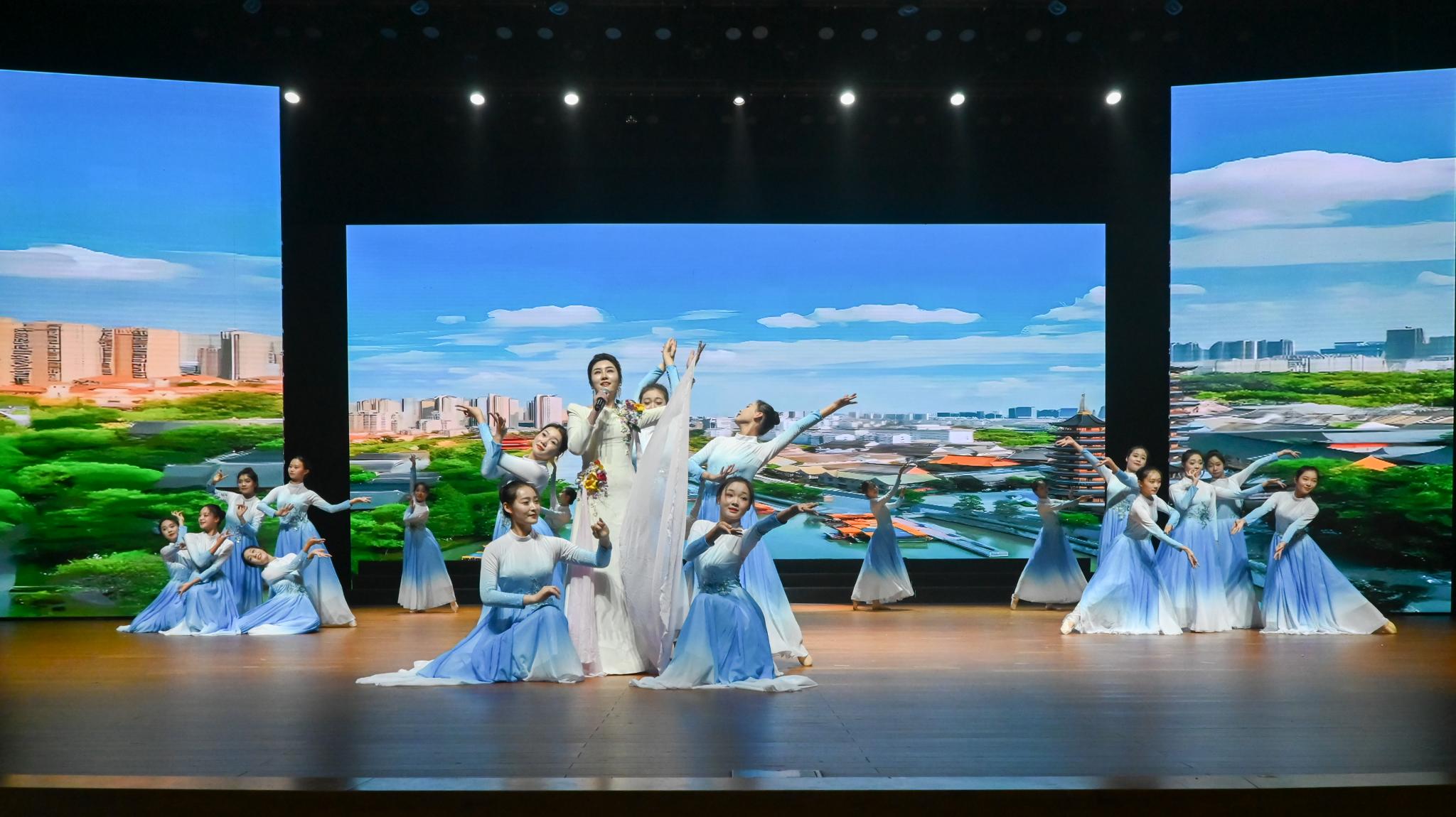 山水相逢,不负相遇。开场舞蹈《我的大学》用动感活力点燃全场,以青春热情开启新篇;阿卡贝拉《龙的传人》用纯粹的歌声唱响火热中国心,绵绵家国情在悠扬中熠熠生辉;歌舞《天下运河》中柔婉的歌声伴着婀娜的舞姿,热忱地感念这方水土的养育,一往而深;朗诵《走向辉煌——致新同学》在新生活中永葆自强之志,在新征程上再创辉煌;舞蹈《太湖鸿雁》灵动地讲述着全国道德模范的动人事迹,无声地传颂着这份温情。
