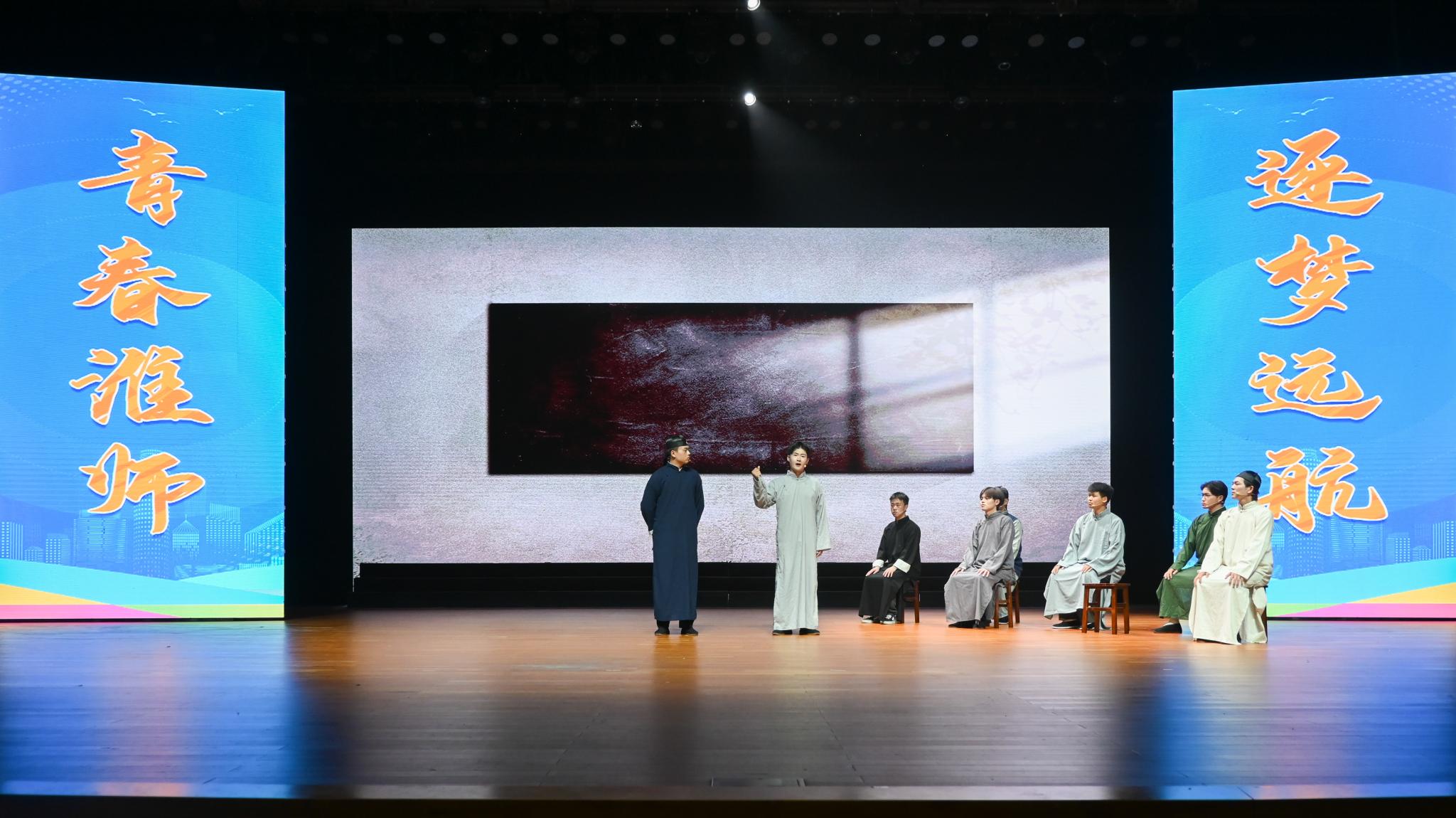 新征程赋予新使命,新使命呼唤新作为。民乐演奏《盛世国乐》气势恢宏,咚咚鼓声敲响盛世华章,铮铮琴声奏鸣民族凯歌;舞蹈《沐光而行》用光点亮青春旅途,呼吁青年追光前行,超越自我,不负韶华;短剧《为中华之崛起而读书》用与周恩来对话的形式,走入周恩来的课堂,领悟周恩来崇高精神风范,追随伟人脚步,让理想信念的光辉始终统领少年道路;舞蹈《亮剑•车桥》回顾车桥战役,不忘先辈热血,铭记烈士遗志,让烈烈燃烧着的不屈不挠的民族精神回荡在几代人的心灵。