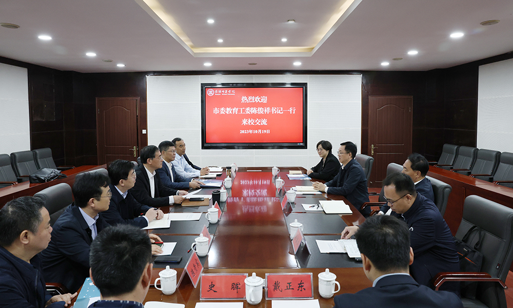 图为淮安市委教育工委书记陈俊祥一行来淮师交流。记者 唐瑀 摄