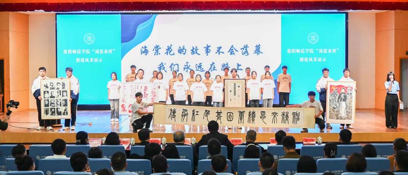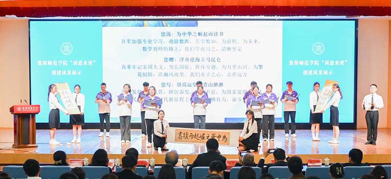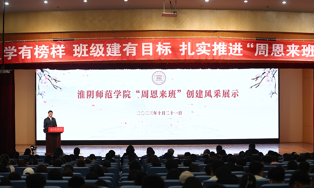 第二十二届“周恩来班”化学化工学院1901班、第二十三届“周恩来班”美术学院1906班、第二十三届“周恩来班”提名奖班级数学与统计学院2004班、文学院2001班现场分享班级的创建之路,同学们的成长故事。新闻与传播学院2202、2302等共建班级、音乐学院2207班作“周恩来班”创建学习成果展示,话剧《为中华之崛起而读书》,舞蹈《海棠花祭》,同学们以自己的方式传诵着周总理的感人事迹,讲述着淮师学子与周总理的故事。