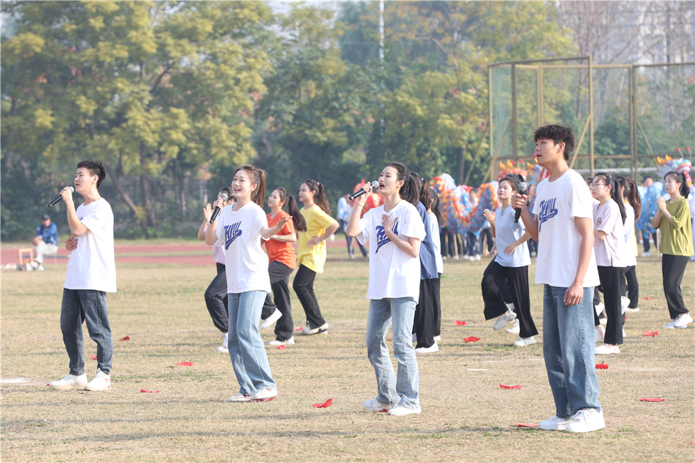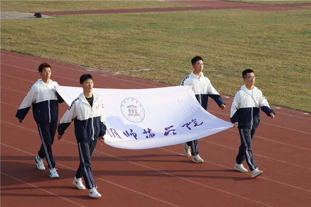在激进昂扬的运动员进行曲中,国旗、校旗、会徽、彩旗、裁判员、研究生院、各二级学院等方阵依次入场,精神饱满地走过主席台。