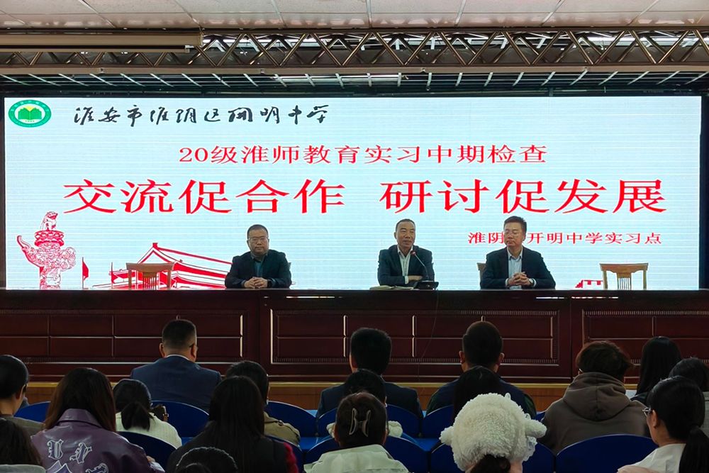 淮师新闻网11月10日电(记者 王蕊)为深入了解师范生教育实习基本情况,进一步加强教育实习工作指导,11月8日,副校长毛广雄带队赴江苏省淮阴中学、淮阴区开明中学和淮安市外国语实验小学进行师范生教育实习中期检查,看望正在实习的2020级师范专业学生,并与实习学校领导、实习指导教师、实习生进行座谈交流。