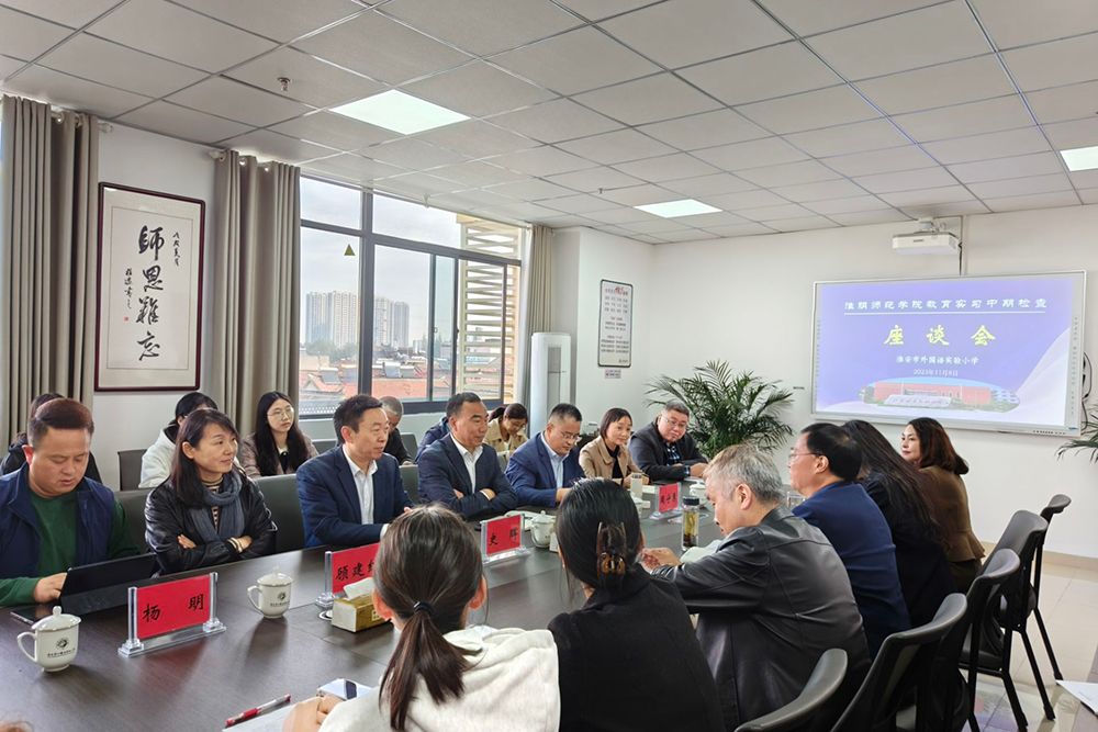江苏省淮阴中学校长朱留明、淮阴区开明中学党总支书记丁波、淮安市外国语实验小学校长张建热情接待了毛广雄一行,介绍了各校教学改革发展成绩,并希望能进一步与淮师开展更深入的交流与合作。各校教学负责人详细介绍了实习基地的发展情况和实习生的整体表现,十分认可淮师对教育实习工作的管理,充分肯定淮师实习生踏实肯干、勤奋好学的态度。实习生们积极分享实习收获,纷纷表示在实习学校指导教师的悉心教导下,不仅掌握了课堂教学的基本操作流程,还积累了许多教学实践经验,进一步提升了自己的教育教学能力。