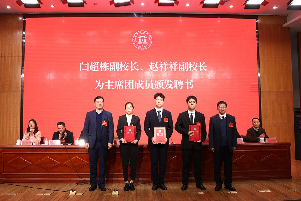 校领导为新当选的研究生会主席团成员颁发了聘书。