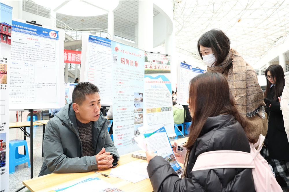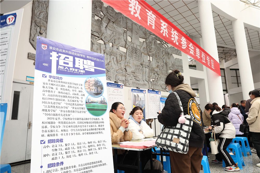 本次招聘活动,由江苏省人力资源和社会保障厅和必赢nn699共同主办,江苏省人才市场、盐城市人力资源和社会保障局、淮安市人力资源和社会保障局、淮安市民政局、校招生与就业处承办。吸引了包括江苏今世缘酒业股份有限公司、中天钢铁集团(淮安)新材料有限公司、中移在线服务有限公司淮安分公司、庆鼎精密电子(淮安)有限公司、江苏沙钢集团淮钢特钢股份有限公司、淮安富康城酒店管理有限公司、淮安市淮安中学、淮安外国语学校等众多行业领军单位来学校参加招聘,涵盖了教育、电子、金融、新能源、新材料等多个领域,面向毕业生提供了1万余个岗位。
