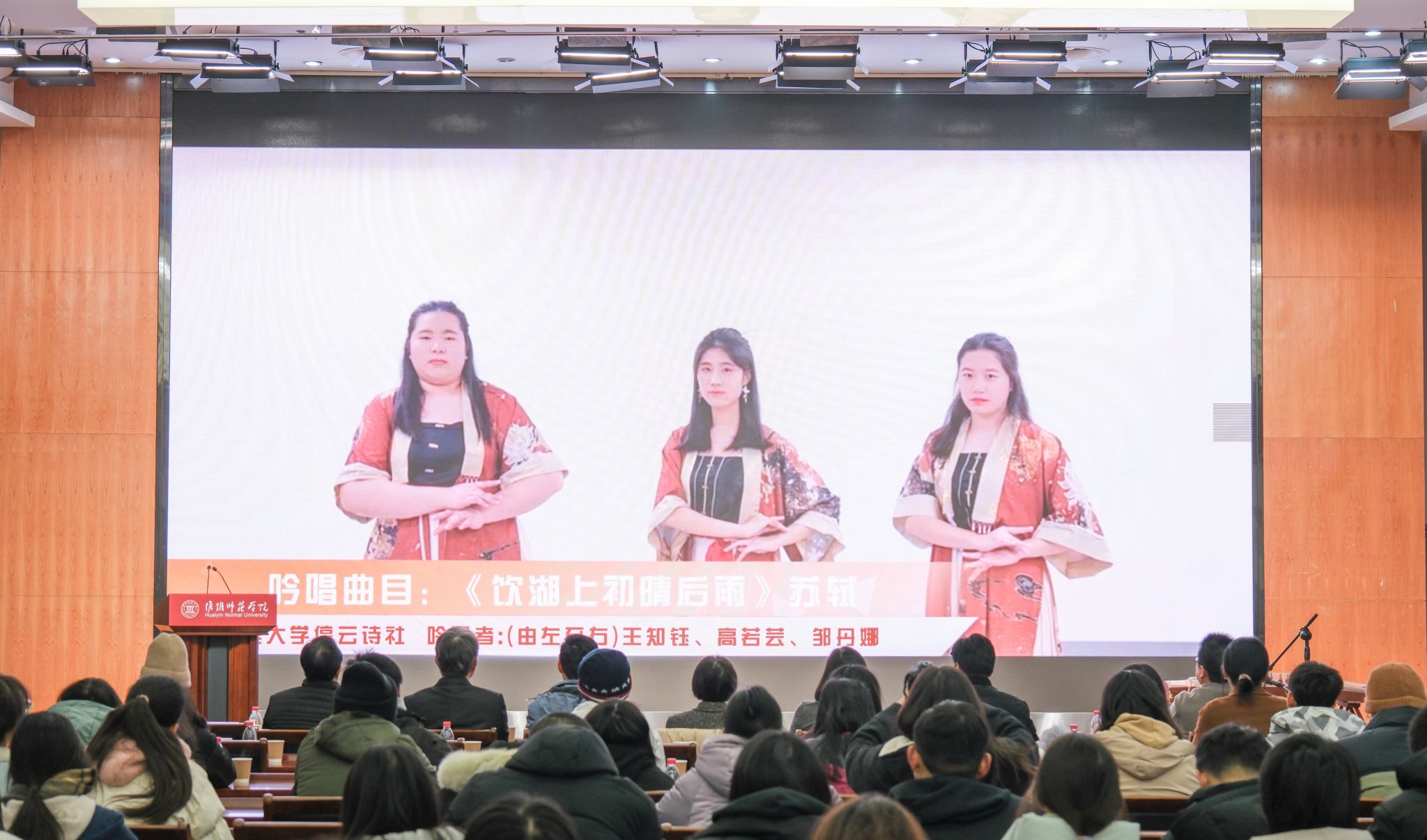 图为东吴大学停云诗社吟诵《饮湖上初晴后雨》。记者 朱圣奕 摄