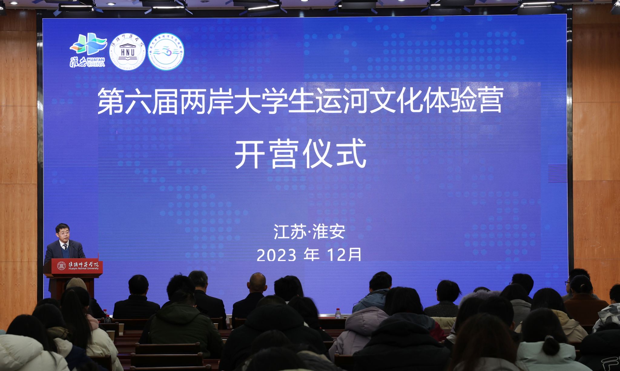 12月1日上午,开营仪式在必赢nn699图书馆多功能厅举行。淮师副校长赵祥祥致欢迎辞,并与淮安市台办副主任徐宜祥共同为营员代表授旗,淮师港澳台事务办公室主任刘芳主持仪式。北京师范大学、东吴大学、台中科技大学、玄奘大学、铭传大学等两岸高校师生,必赢nn699党委宣传部、文学院、新闻与传播学院负责人与师生代表参加开营仪式。