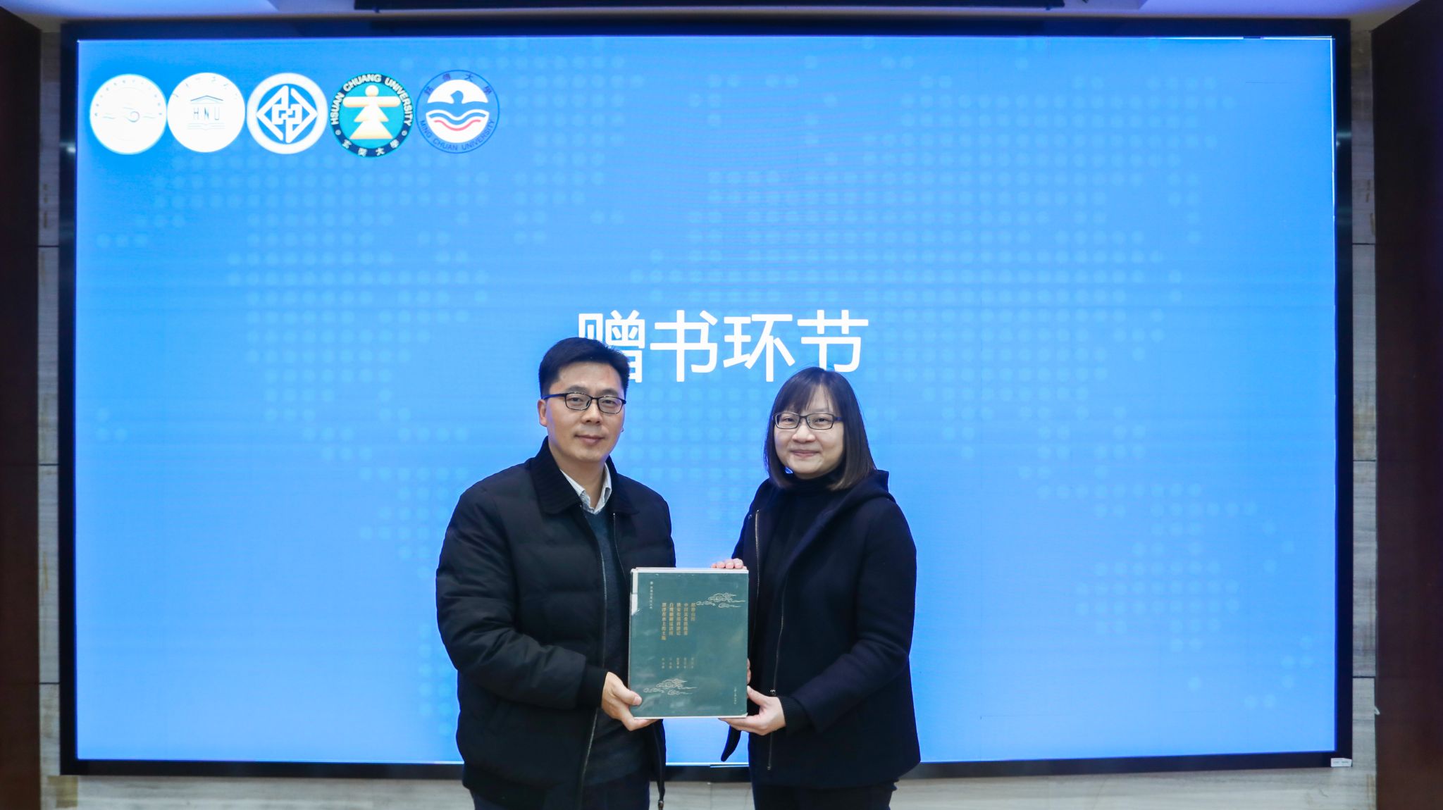 图为文学院党委书记孙辉向台中科技大学赠书。记者 高俊晖 摄