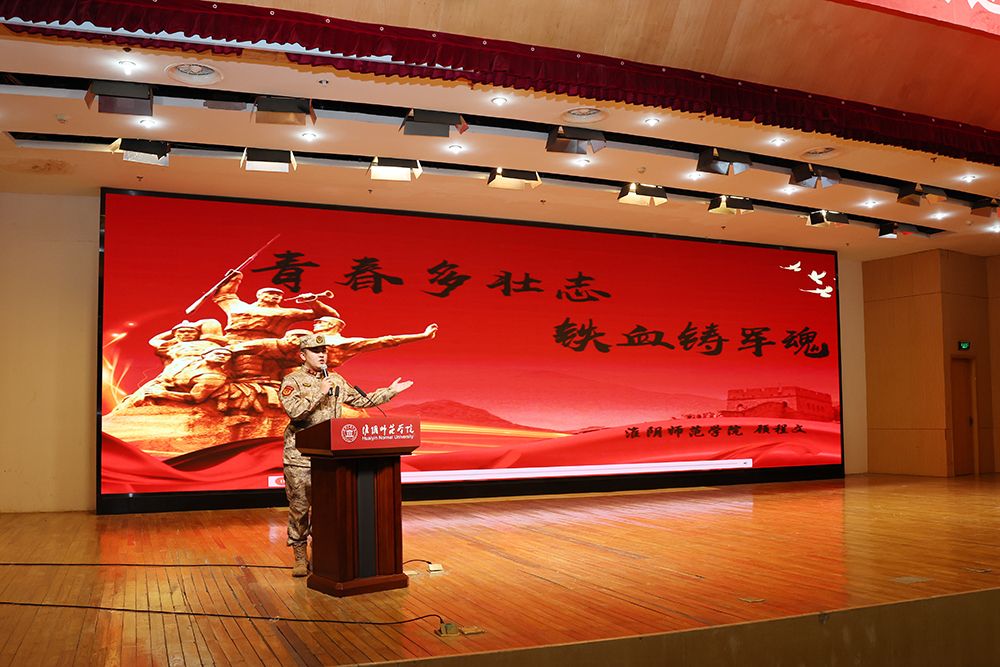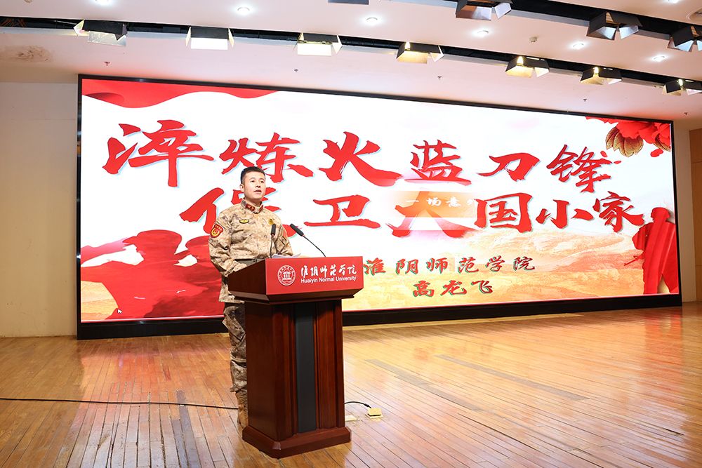 闫超栋在致辞中简要介绍了淮师的基本情况和近年来的发展取得的成效。他表示,依法服兵役是每个适龄青年应尽的光荣义务,学校将注重完善机制,推动责任落实“全链条”;注重宣传培育,推动教育引导“全覆盖”;注重联动协同,推动服务保障“全畅通”,全面做好2024年春季征兵工作。他号召广大淮师青年踊跃应征入伍,将青春和热血挥洒在新时代强军事业的伟大实践中。