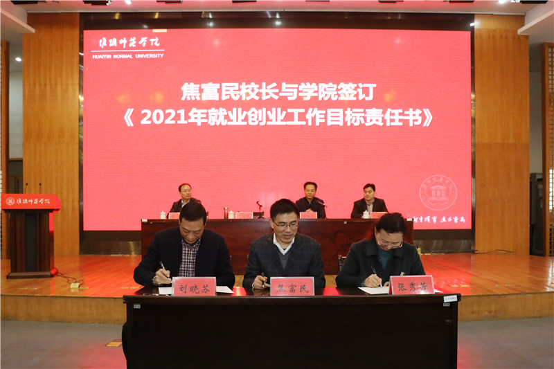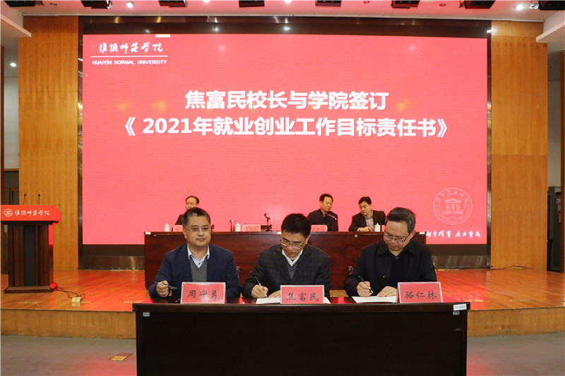 焦富民代表学校与二级学院党委书记、院长签订了《2021年就业创业工作目标责任书》。