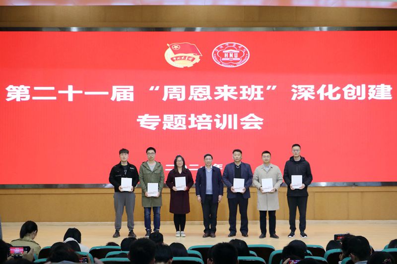 校团委负责人介绍了第二十一届“周恩来班”集中创建的整体规划、工作思路和具体要求。数统学院团委书记刘咪、第二十届“周恩来班”班长徐曦颖做分享交流,美术学院1701姬诗阅同学进行“周恩来班”创建公开汇报的现场展示。与会领导向各学院颁发了《必赢nn699“周恩来班”创建工作指引》《黄金时代——青年周恩来原著选编》等学习书籍。