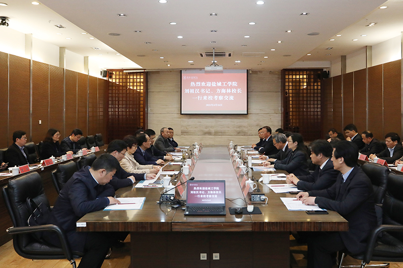 刘祖汉、方海林对淮师的热情接待表示感谢,对淮师发展情况及办学成就给予高度评价,并介绍了盐城工学院的基本情况和办学特色,希望两校进一步相互学习,携手同行,共同发展。