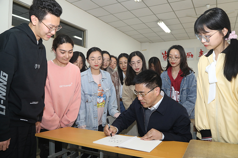 现场办公会之前,焦富民一行现场观摩了马院大学生蜜蜂微讲团的社团活动,实地考察了马院学科平台、教研场所等,并与学院师生亲切座谈。焦富民还向结对联系的思政课教师顾建红博士赠送《马克思恩格斯文集》。