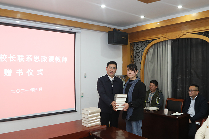 图为焦富民向结对联系的思政课教师顾建红博士赠送《马克思恩格斯文集》。记者 唐瑀 摄