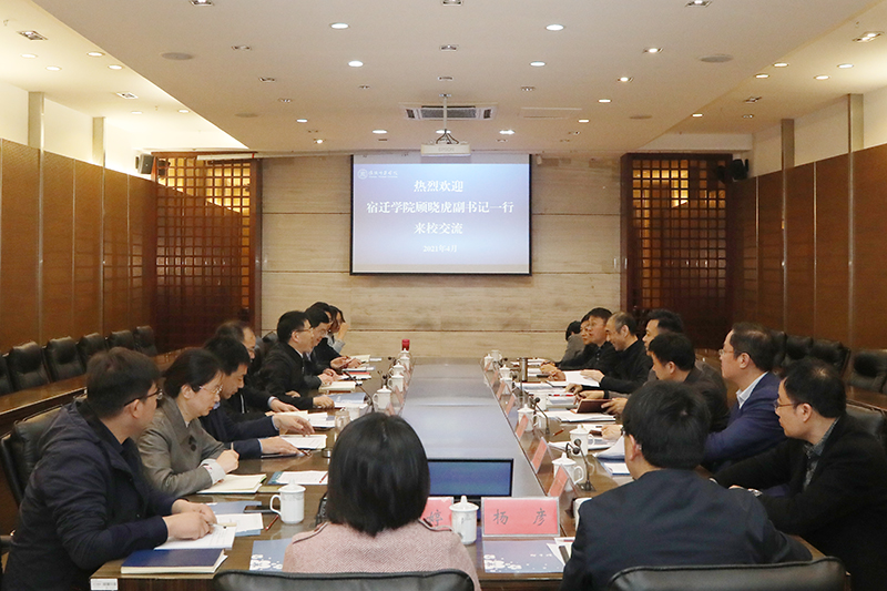 图为宿迁学院党委副书记顾晓虎一行来淮师考察交流。记者 唐瑀 摄