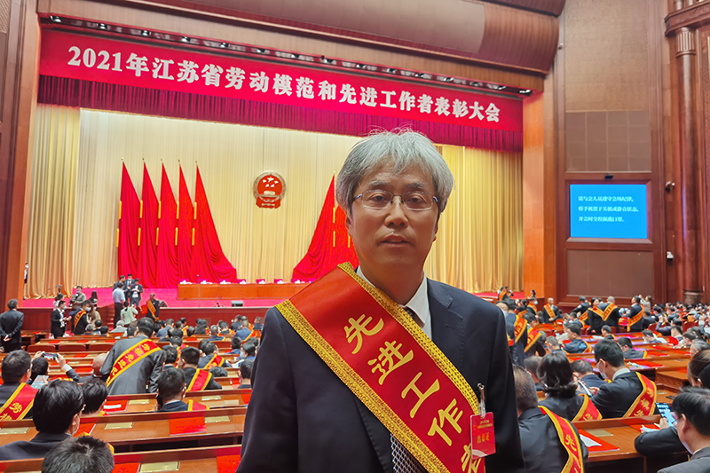 图为王新风教授荣获江苏省先进工作者荣誉称号。