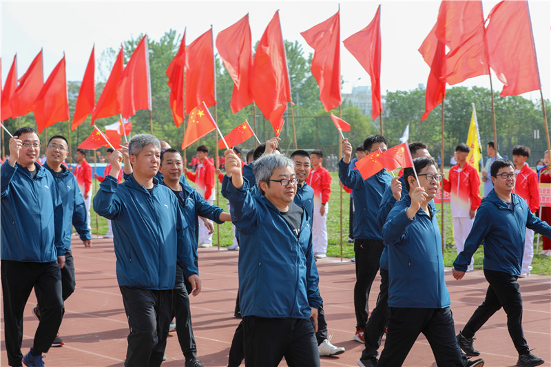 庄严的升国旗仪式后,焦富民致开幕词。焦富民说,习近平总书记指出,体育是提高人民健康水平的重要途径,是满足人民群众对美好生活向往、促进人的全面发展的重要手段,是促进经济社会发展的重要动力,是展示国家文化软实力的重要平台。学校举办教职工体育运动会,旨在为广大教职工搭建起强健身体、展示风采、增进友谊的大舞台,为推动我校各项事业更好更快发展营造了凝心聚力、共同拼搏、争创一流的好氛围。
